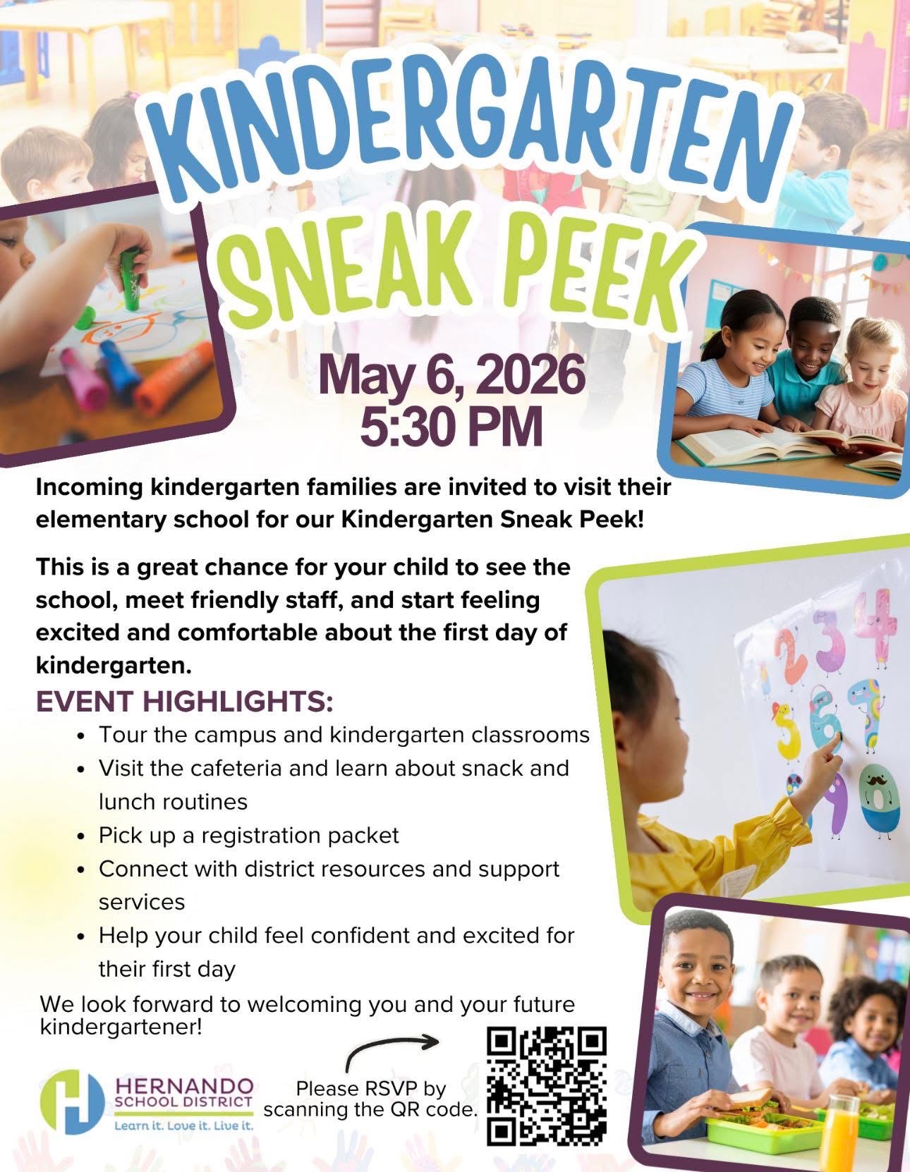 We are excited to invite you to our Kindergarten Sneak Peek on Wednesday, May 6!